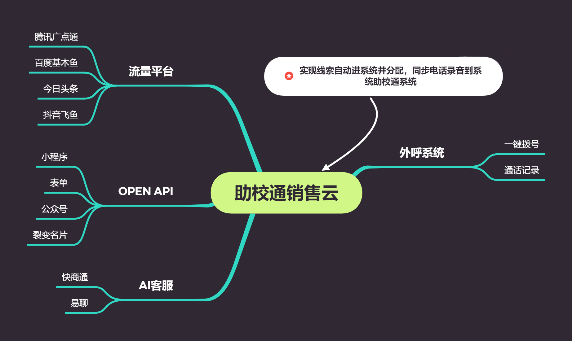信息流自动进线,对接各大广告平台,线索智能分配算法,推广到成交数据全流程实时监控。