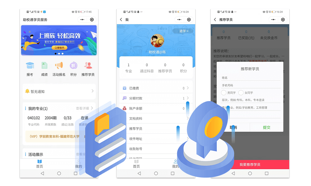 学员报考及成绩查询自动化,学员标签化管理,学员档案数字化。